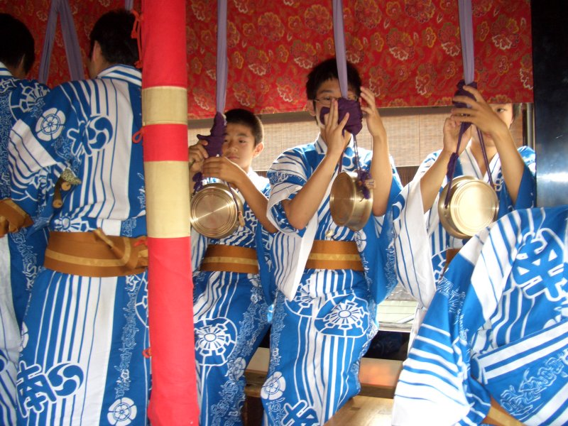 鉦方も準備。ちょっと緊張してるかも。