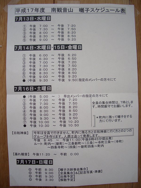 お囃子スケジュールについての説明。