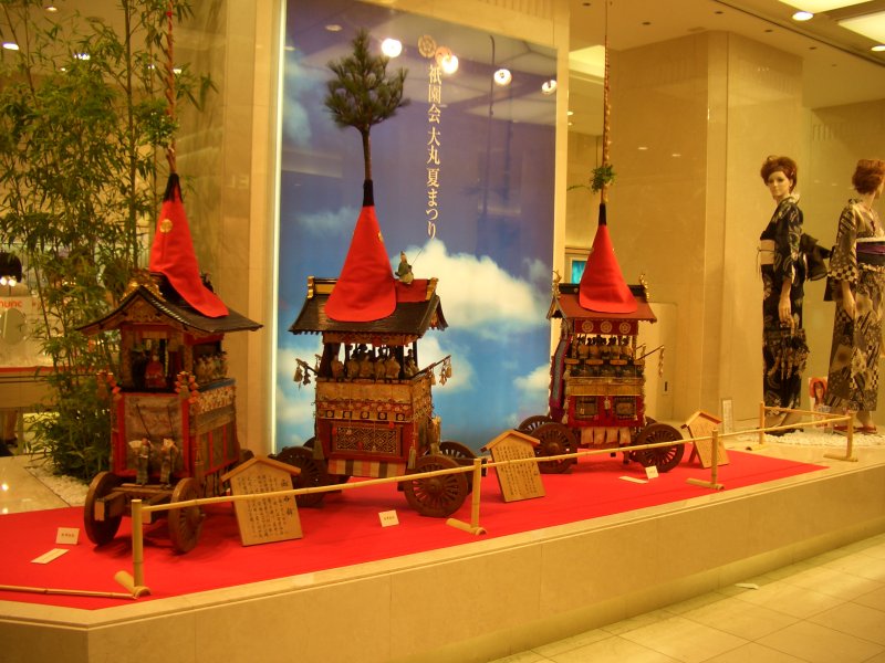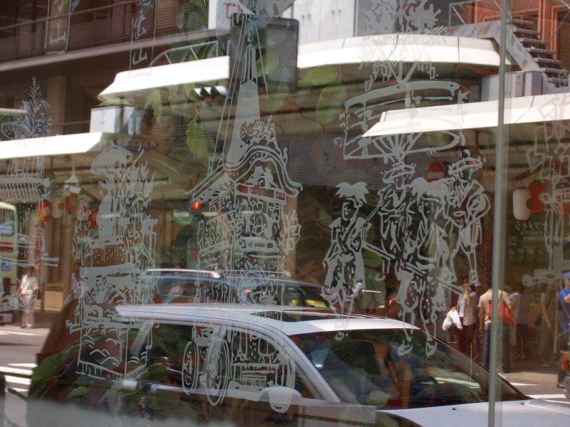 こちらのショウウインドウにも毎年、立派なミニチュア鉾が飾られてます。(この写真は2002年当時です)