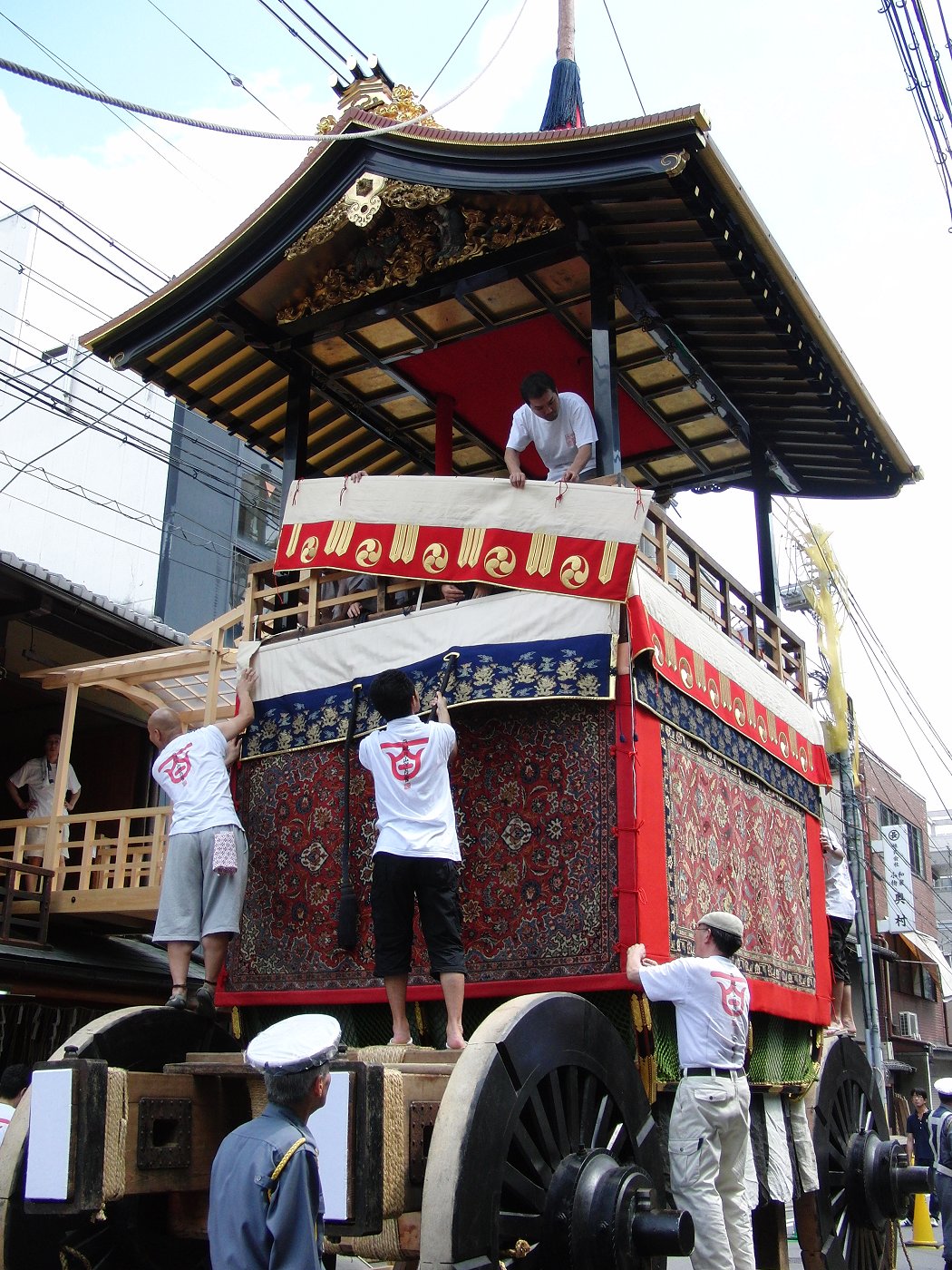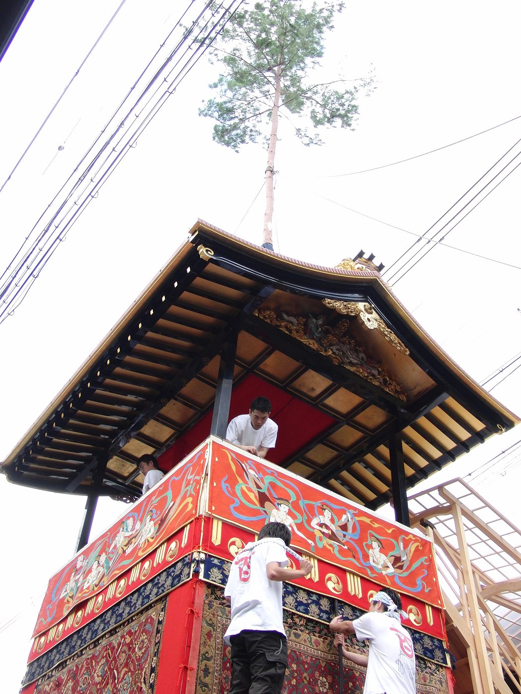 14時50分頃から、囃子方が鉾に乗り込み、準備を始めます。