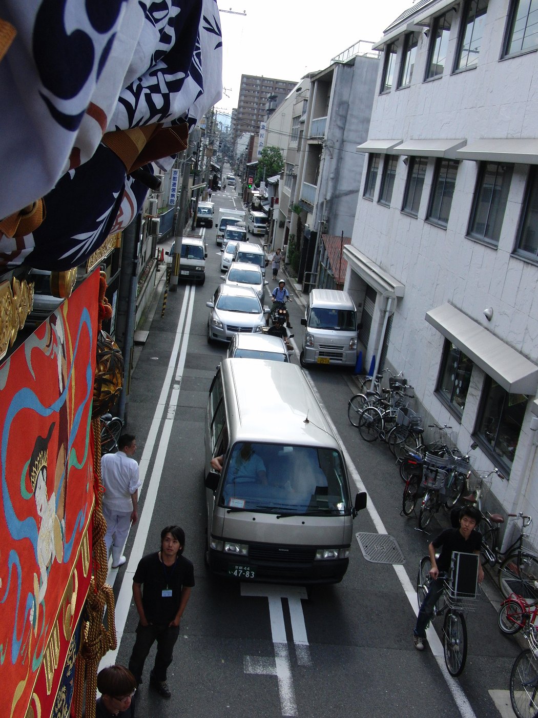 放下鉾を越えたあたりで、今度は北へ向かう準備です。