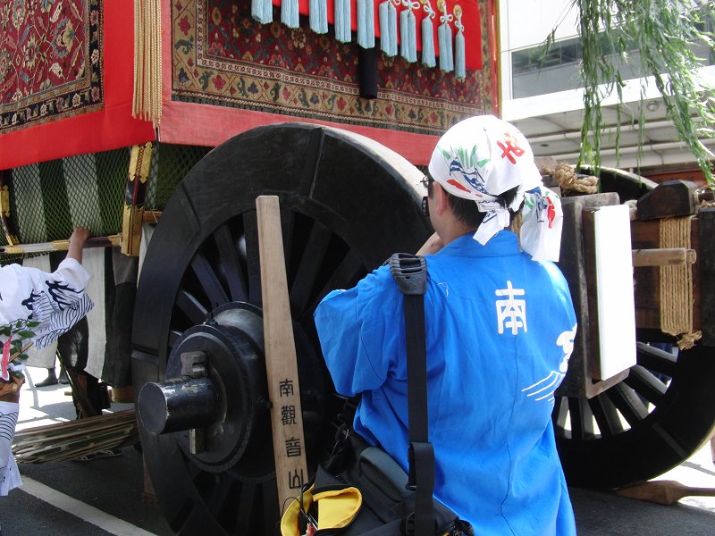 夕方、今日の解体が終わり、観光客のかたも、ほとんどいらっしゃらなくなり、静かになり、懸装品がはずされて、骨組みだけになた山鉾だけを見てると、もう、本当に、せつなくなるというか、南観音山に、お疲れさんやったなぁっ、労をねぎらってやりたい気持ちになります。